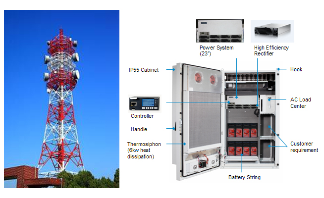 台达户外冷却系统是热带气候、冬季酷寒区域的很好选择,创新的系统设计可提升电池寿命,以经济有效的方式优化使用者设备空间。先进的散热冷却与系统控制能达成有效节约成本及降低运营费用。高弹性的电源系统配置与重量轻、高效传热的铝合金户外机柜大大满足了通讯基站的各种需求。